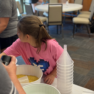 Prior to the event, several families volunteered to make bright colored rice. Kids used funnels to pour their choice of colored rice into the bottles. They also added small items like a broken crayon, tiny pom poms, foam pieces including a scarecrow, candy corn, an acorn, etc. They shook the bottle up to make the pieces harder to find and then Student Ambassadors hot glued the lids on. Amazingly, we ended the night with just a few pieces of rice on the floor!