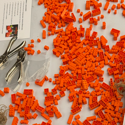 Next up was the Pumpkin Lego station. Kids made a pumpkin shaped treat bag filled with 30 pieces of various sized lego bricks. They cut out a leaf, hole punched it and tied the bag with twine. One little guy said it was his first time ever using a hole punch :)