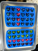 After they bake, they need to cool for a bit. We found that once they cooled, they were best kept in a single layer to store. Otherwise the wax shavings ended up all over the hearts and they lost that smooth, shiny finish.